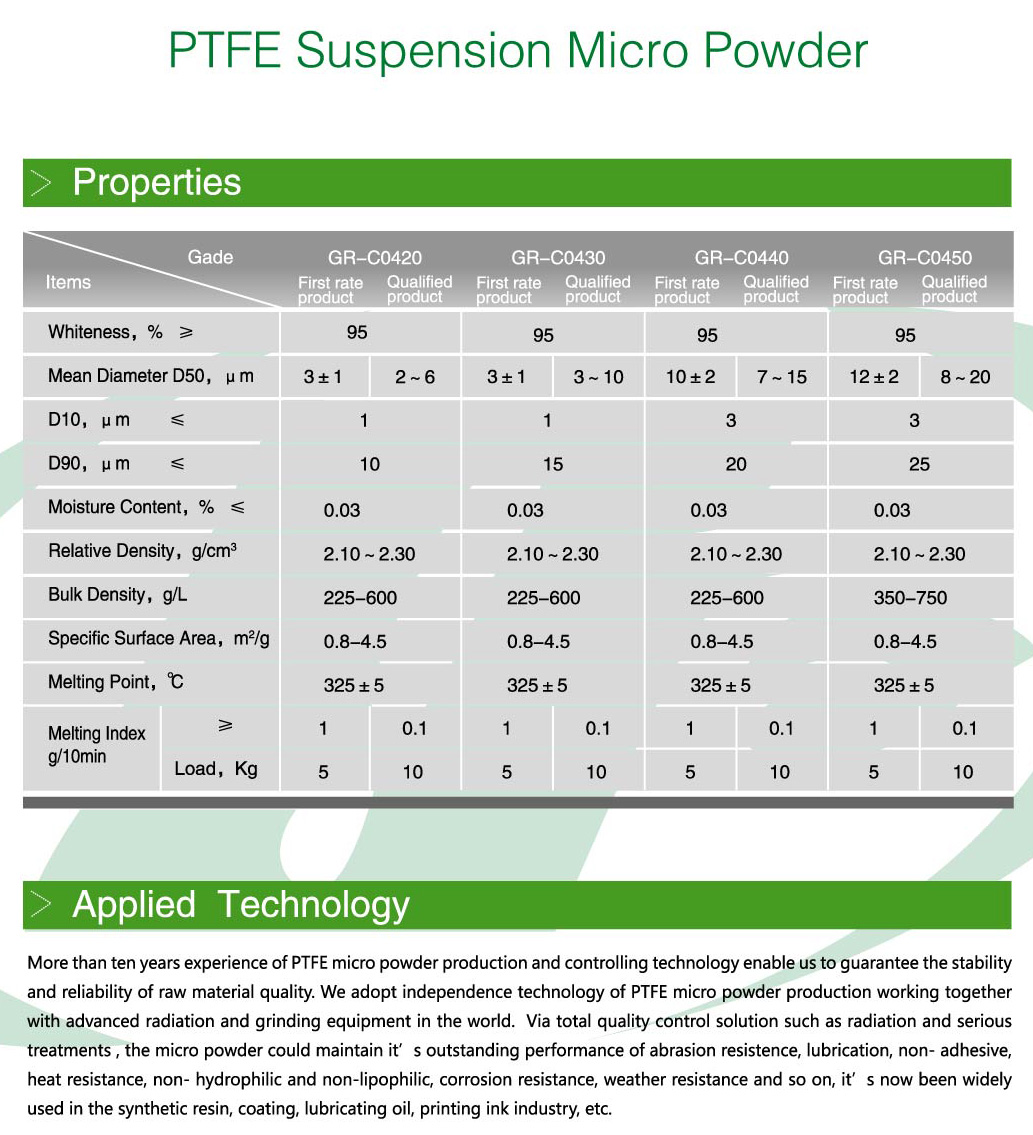 PRODUCT Location:home >product > |PTFE Suspension Micro Powder