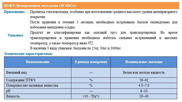 Химическое наименование   ПТФЭ Дисперсионная эмульсия (JF-4DCA)
