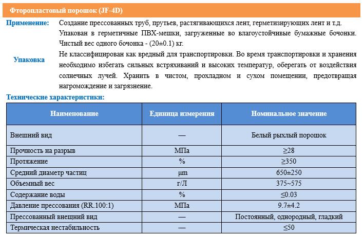 Название продукта   Фторопластовый порошок (JF-4D)